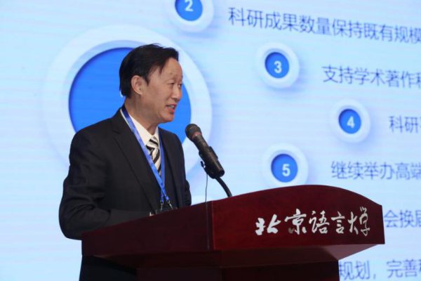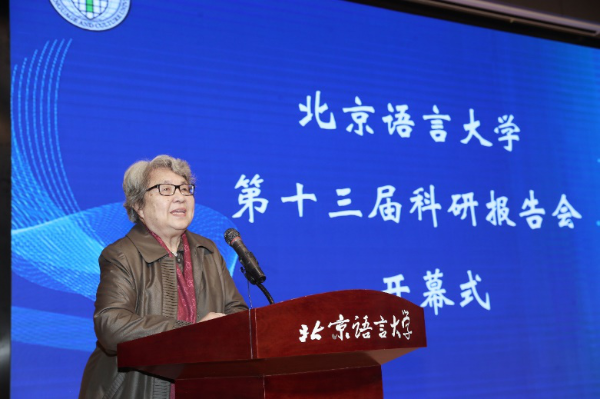 10月24日,我校第十三届科研报告会隆重召开。会议由科研处主办,校学术委员会学术指导,人文社会科学学部承办,《中国语言学报》等多家校办刊物协办。著名语言文字学家王宁先生,北京语言大学刘利校长,魏晖副书记,张旺喜副校长,张宝钧副校长,党委常委、统战部吕静部长,校长助理、人事处郁有学处长,校长助理、研究生院郭鹏院长应邀出席。近200名正式代表和近50名特邀代表参加开幕式。开幕式由科研处张健处长主持。 刘利校长在开幕辞中充分肯定了我校科研报告会这一优良传统,提到了我校近两年来的科研发展成绩,同时也指出了我校科研工作在质量、特色和贡献度方面存在的提升空间,并就学校未来的科研发展提出了三点希望:一是加强制度建设,进一步提升质量意识;二是加强顶层设计,凝练科研特色;三是坚持需求导向,提升服务国家战略的能力。 在开幕式上,张旺喜副校长代表学校作了全面详实的科研工作报告,从科研经费和项目、科研成果、学术出版、科研平台、来园讲坛、学术委员会、科研管理等七个方面总结了自上一届科研报告会以来我校科研发展的基本情况。国别和区域研究院的黄靖教授和中华文化研究院的陈民镇博士作为教师代表发言,和与会代表分享了自己的研究体会。 张旺喜副校长作科研工作报告