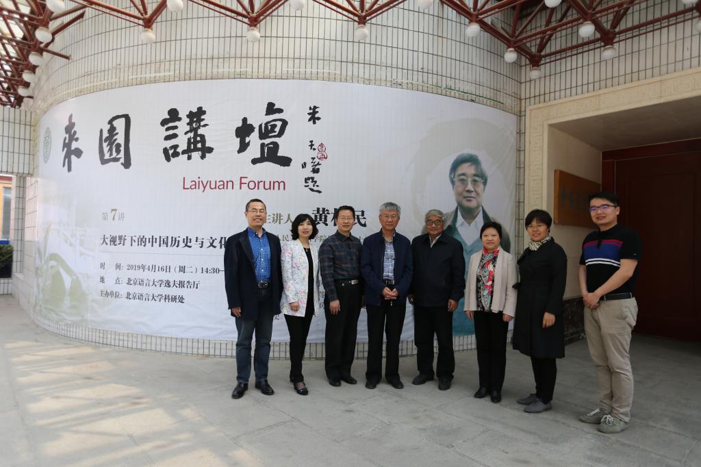 黄朴民先生讲座 黄先生在讲座开篇,分享了自己对研习历史的意义的思考,认为任何一个国家的发展,都需要梳理传统、回归历史,尊重历史大规律。随后,黄先生对中国古代历史和文化进行了自己独到的分析,旁征博引,结合历史事实,描绘了中国历史发展的三条主要轴线。第一条轴线是“政治格局上的东与西”。黄先生从司马迁的远见卓识、尧舜禹禅让制崩塌的原因、太康失国与少康中兴等角度,提出中国历史是在东部与西部的不断角逐中发展而来。第二条轴线是“思想文化上的分与合”。黄先生结合历史事件,从“制礼作乐”的文化第一次大整合,到诸子蜂起,思想文化上的大分化,到“独尊儒术”的思想文化第二次大整合,再到汉末魏晋思想的异彩纷呈,讲解了中国思想文化思潮的大势。第三条轴线是“精神风尚上的文与武”。黄先生认为,中国的文武观念,从先秦“宁为百夫长,不做一书生”的尚武精神, 在受到儒家思想的影响之后,逐步转成“山外青山楼外楼,西屋歌舞几时休”的崇文之风。黄先生也表达了对于当今“尚武”精神缺失的担忧,希望文武并重,达到整个社会的阴阳平衡。 整场讲座视角开阔、脉络清晰、观点鲜明、分析深入。讲座结束后,师生们踊跃提问,黄朴民先生亲切解答,现场互动积极,气氛热烈。本场讲座不啻一部中国通史,让北语师生在大视野下了解了中国的古代历史和文化,启发北语师生从历史的维度、用历史的方法进行思考。 “来园”是北语最具代表性的园林景观,取“有朋自远方来”之寓意。我校新开设的“来园讲坛”意在展示这一精神内涵,以“弘扬学术、中外融通、开放包容、创新发展”为宗旨,每讲都将邀请海内外公认的知名学者前来做学术讲座,从而开阔广大师生的学术视野,丰富人文素养和综合素质,为提升校园文化品味开辟高端学术平台。