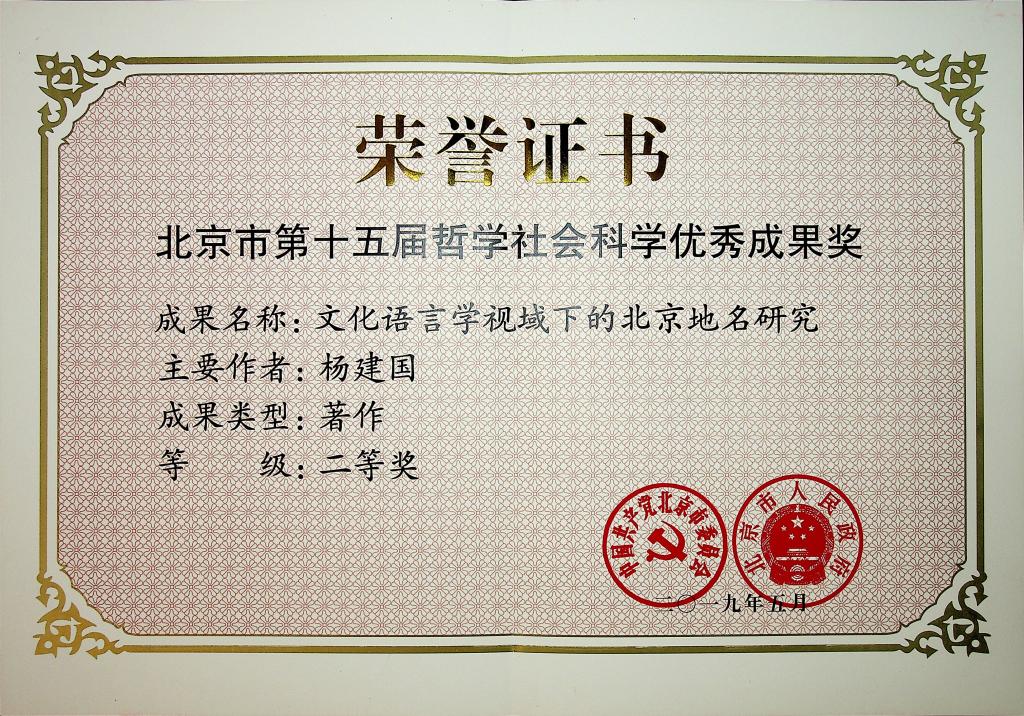 5月28日上午,北京市第十五届哲学社会科学优秀成果奖表彰座谈会在北京市委大楼举行,我校1项成果喜获北京市第十五届哲学社会科学优秀成果奖二等奖。北京市委常委、宣传部长杜飞进出席会议并讲话。200多位获奖代表参加会议。 我校获得优秀成果奖二等奖的研究成果为杨建国教授撰写的专著《文化语言学视域下的北京地名研究》。该书以北京地名为考察对象,以文化语言学的研究视角全面系统深入地考察了北京城区及郊区的地名文化,通过对现存地名进行回溯,由地名的命名、更名理据梳理出北京城区和郊区的地名文化资源,并从其文化内涵的角度考察专名中蕴含的封建衙署、经济生活、驻军营卫、社会意识、社会心理、宗教信仰、民族融合、移民情况、宗族观念、历史人物(含民族英雄)、历史事件、传说故事、五色五行观念、地标建筑等诸多信息。借此让读者通过北京地名,了解历史上北京地区的社会经济发展、民族迁徙与融合、宗教信仰、军事活动与政治变革;也可以由此窥探中华民族的思维特点、思想观念、心理特征、审美特点等。 表彰会上,市人力社保局副局长荀连忠宣读了表彰决定,市社科联党组书记、市社科规划办主任张淼汇报了本届获奖情况。北京市第十五届哲学社会科学优秀成果奖经过系统初评、复评、市评奖委员会总评、向社会公示等程序,共有208项优秀成果获奖。其中,4项成果获特等奖,41项成果获一等奖,163项成果获二等奖。这些优秀成果,具有鲜明实践品格和理论创新特色,反映了近三年首都哲学社会科学研究水平,凸显出首都社科理论人才不断涌现的大好局面。 北京市哲学社会科学优秀成果奖自1987年设立以来,经过连续十四届的评选工作,已成为首都社科界知名度高、公信力强的品牌奖项,其激励功能、导向作用和社会影响力日益凸显,是哲学社科人才的“孵化器”。 | ||||