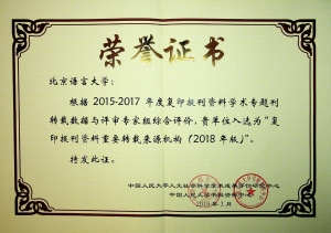 北京语言大学入选“复印报刊资料重要转载来源机构(2018年版)”