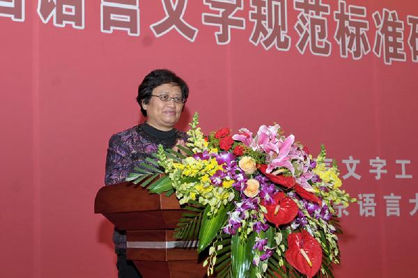 12月12日上午,中国语言文字规范标准研究中心成立仪式在北京语言大学举行,教育部副部长、国家语委主任李卫红出席成立仪式,并与北京语言大学党委书记李宇明一同为中心揭牌。李宇明书记汇报了中心建设规划,北京语言大学校长崔希亮致欢迎辞。教育部语信司、语用司、语用所,北京市规划办,北京市教委等领导,语言文字领域专家及北京语言大学师生170余人出席成立仪式。 李卫红在讲话中指出,党的“十八大”报告强调要大力推动社会主义文化大发展大繁荣,要“推广和规范使用国家通用语言文字”“建设优秀传统文化传承体系,弘扬中华优秀传统文化”“繁荣发展少数民族文化事业”,这为我们在新的历史起点上做好语言文字工作指明了新目标、提出了新任务。语言文字规范标准是语言文字法律法规、方针政策的集中体现,做好语言文字标准建设工作是贯彻落实党的十八大精神的重要举措,是贯彻实施《国家通用语言文字法》的迫切需要,是落实即将颁布的《国家语言文字事业改革和发展规划纲要(2012-2020)》的重要任务。国家语委选择北京语言大学建设“中国语言文字规范标准研究中心”,并做以此为语言文字规范标准科研基地,是因为北京语言大学在语言文字科学研究方面拥有良好基础,在语言文字学科发展、人才队伍建设方面具备深厚的实力。 李卫红要求“中国语言文字规范标准研究中心”要围绕国家语言文字事业改革和发展的大局,开展科学研究工作;要全方位、深入地开展中心建设;要加强以体制机制为核心的制度建设,充分发挥中心协同创新的作用,开拓创新,努力进取,为我国语言文字事业的改革和发展做出贡献。 北京语言大学党委书记李宇明教授汇报了中心建设规划。据介绍,中国语言文字规范标准研究中心是国家语委与高校共建的第二个研究基地。基地成立后的研究目标主要有四:首要任务是承担国家语委的规范标准制定工作;第二是对语言文字规范标准的社会需求进行调研,对社会执行语言文字规范标准的状况进行调研,根据调研情况及时向国家语委提出规范标准制定、修订的建议,提出规范使用国家通用语言文字的对策建议;第三是根据国家语委的部署和社会需求,对规范标准的使用行业、语委工作系统的干部进行规范标准的辅导培训,并积极开展规范标准的社会服务工作;第四是人才培养和学科建设。基地秉承三个科研理念,一是“政、产、学、研、用”相结合;二是资源共享;三是结合学校“2011协同计划”的建设,探讨中心运行的新体制新机制,用现代科研制度保持中心的学术活力。 北京语言大学校长崔希亮教授在致辞中指出,该中心是学校2011协同创新平台建设计划和哲学社会科学繁荣计划中“高水平创新平台建设”的重要部分,也是建设“北语”智库的重要内容。北语致力于将中心建设成国家语委的“咨询库”、“智囊库”和“信息库”。 党的“十八大”提出“推广和规范使用国家通用语言文字”,这是新时期语言文字事业发展的核心任务,要求一方面继续扩大国家通用语言文字的普及范围,同时更要注重提高质量,推进语言文字规范化标准化信息化建设,提高语言文字社会应用的规范化标准化水平,提升国民语言文字应用能力。 为提高国家语言文字决策的科学性和针对性,使国家语言文字工作更有效地服务于国家战略全局,国家语委决定依托北京语言大学丰富的语言文字研究资源,合作建设国家语委科研基地。该中心的宗旨和目标在于:服务国家语言战略大局、为国家的语言决策提供咨询服务,发挥智囊库和信息中心的作用,着重开展语言文字规范标准、语言测试、语言文字标准与测试培训等方面的研究工作,为国家语言文字规范化、标准化、信息化服务。同时,积极协助语委开展语言文字规范标准的宣传推广工作;建设语言文字规范标准数据库,并向社会提供咨询服务;进行语言文字规范标准研制人才培养;为社会提供语言文字规范标准的培训工作。 揭牌仪式 李卫红副部长讲话 张浩明司长主持 李宇明书记讲话 崔希亮校长致辞 会议现场 | ||||